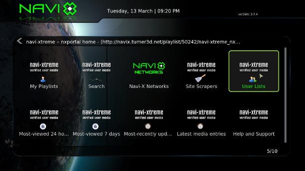 Navi-X is een plug-in die niet met één term te omschrijven is. In feite brengt Navi-X media van verschillende bronnen samen in één interface via afspeellijsten die door gebruikers gemaakt zijn. Navi-X is niet terug te vinden in de standaard add-ons van XMBC, u zult het moeten downloaden via Navi-X.org. Sla het zip-bestand op en ga in XBMC naar Systeem / Add-ons. Klik op Add-ons installeren mbv zipbestand en blader naar de gewenste add-on. Na installatie vindt u Navi-X in het hoofdmenu terug onder Programma's.
