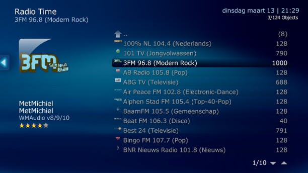 Na het installeren van een plug-in is MediaPortal prima inzetbaar als internetradio. Onze favoriet is RadioTime, dat u kunt downloaden via Team-MediaPortal.com. Klik op Download, sla het bestand op en klik op Openen. Doorloop de installatiewizard en start vervolgens MediaPortal Configuration via Start / Alle programma's / Team MediaPortal / MediaPortal. Klik in de linkerkolom op Plugins, selecteer RadioTime en klik op In Home. Sluit het programma en start MediaPortal, u vindt RadioPortal terug in het hoofdmenu.