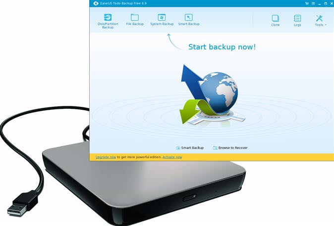 Todo Backup Free kan je computer back-uppen naar een externe harde schijf.