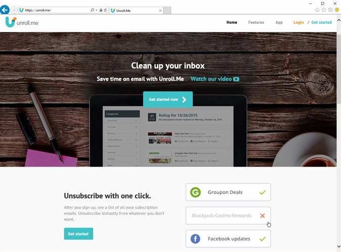 Ongewenste mail is een terugkerend probleem. Eerst hadden we vooral last van spam, maar dat wordt steeds beter opgevangen door spamfilters. Nieuwsbrieven en de stortvloed aan notificaties van Facebook en andere sociale media kosten veel tijd om weg te klikken. Afmelden is vaak lastig of we doen hier geen moeite voor. Dankzij unroll.me gaat het veel eenvoudiger. De dienst inventariseert de 'rommel' die binnenkomt in je mailbox. Vervolgens kun je de berichten 'samenvatten en tegenhouden' zodat je alles in één overzicht kunt bekijken en verwerken. Ook kan unroll.me je helpen bij een snelle afmelding. Unroll.me werkt met alle bekende webmaildiensten waaronder Outlook.com, Yahoo Mail, iCloud en Gmail.