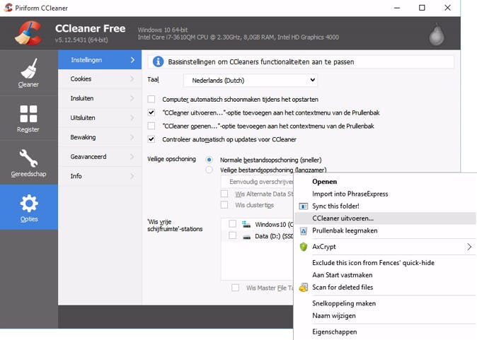 Tip 09 Voeg CCleaner toe aan het rechtermuisknopmenu van je prullenbak.