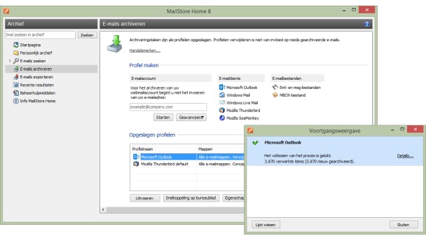 Als je een online maildienst gebruikt van bijvoorbeeld Google, Microsoft of Yahoo, dan maak je je waarschijnlijk geen zorgen over back-ups van je mail. Alles is altijd keurig beschikbaar in de cloud. Gebruik je nog een desktop-programma waarbij je mail via POP gedownload wordt naar je computer? Dan is een goede mailback-up de moeite waard en gelukkig eenvoudig te realiseren met MailStore Home. Dit programma ondersteunt alle populaire programma's en maakt het eenvoudig om je gegevens veilig te stellen in een archief. Klik hiervoor op E-mail archiveren, kies je mailclient en doorloop de stappen van de wizard om je archief aan te maken.