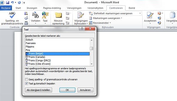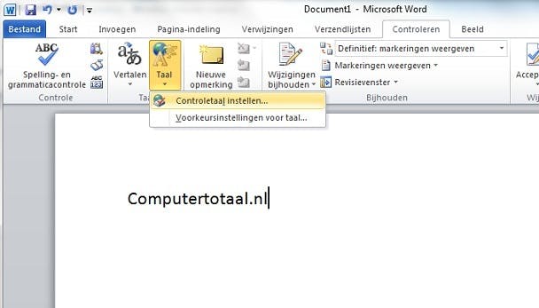 2. Ga naar het tabblad Controleren en kies voor Taal -> Controletaal instellen.