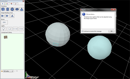 Terwijl u de basisvormen (‘the primitives’), op het werkvlak sleept, ontvangt u voortdurend tips. Toch zult u snel naar het betere modelleerwerk verlangen om complexe vormen te creëren. Helaas, zonder gids hoeft u zich geen illusies te maken: u zult er weinig of niets van bakken. Gelukkig bestaan er veel tutorials op het web die u via het helpmenu in 3DCrafter bereikt. Op die manier kunt u ook de modellen van anderen proberen, of de texturen binnenhalen waarmee u uw eigen creaties vormgeeft. Het is zelfs mogelijk om een geanimeerde scène samen te stellen die u frame per frame aanpast. Wie zich vastbijt, kan zelfs animaties maken en die opslaan als avi-bestand.