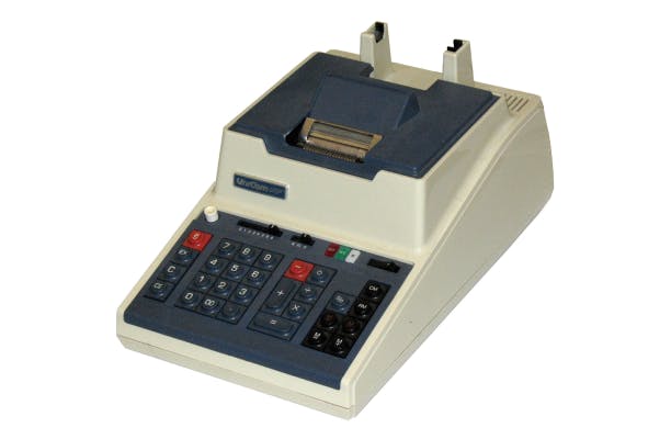De Busicom 141-PF, hier in de OEM-uitvoering Unicom 141P, was het eerste apparaat met een Intel-microprocessor (Intel 4004).