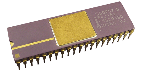 Een Intel 80287-coprocessor, de mathematische aanvulling op de 80286.
