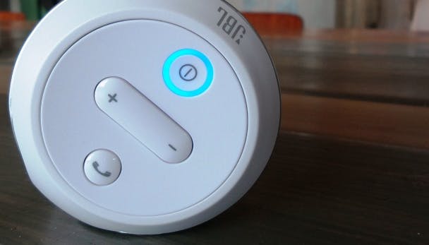De gesprekken komen helder door en het volume is dermate op te krikken dat je er een flinke vergaderruimte mee kunt vullen. Opvallend en in het oog springend is de bovenkant van deze draadloze speaker; daar vind je knoppen voor het opnemen van een telefoongesprek, het skippen tussen nummers, de input selectiekeuze (Bluetooth, aux of microSD-kaart), een pauze- en startknop en de volumeregeling.