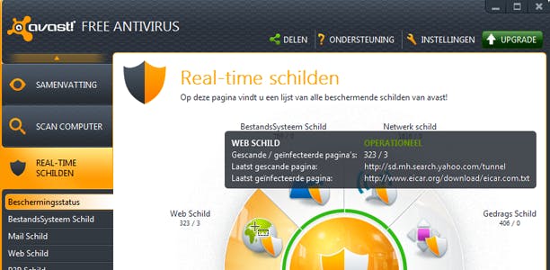 Het moet gezegd, Avast! is een van de meest veelzijdige antivirustools in het gratis segment. Dat blijkt met name uit het aantal realtime beschermingsfuncties, hier schilden genoemd. Naast de bescherming van alle lokale bestanden (tijdens het openen en/of schrijven), biedt het programma ook nog bescherming aan van binnenkomende en uitgaande e-mail, van downloads via je browser, via P2P, via chattools of via je netwerk. Een scriptschild controleert bovendien alle scripts die op je systeem worden uitgevoerd.
