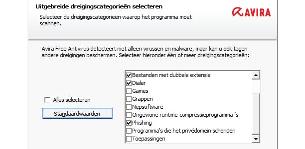 In de expertmodus komen meer opties ter beschikking. Jij bepaalt bijvoorbeeld wat er standaard moet gebeuren als Avira malware detecteert, welk type archiefbestanden je in scanrondes wilt opnemen, welke processen je buiten de realtime protectie wilt houden et cetera.