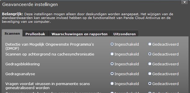 Via radioknoppen bepaal je mee hoe Panda tijdens het scannen reageert.