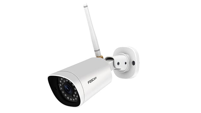 Zeker bij buitengebruik is wel zo fijn als de bewakingscamera tegen een stootje kan. Dat zit bij deze Foscam FI9912EP wel goed, want de behuizing is van metaal. Ondanks de relatief lage aanschafprijs bedraagt de resolutie evengoed nog 1920 x 1080 pixels, zodat je ongenode gasten duidelijk kunt herkennen. In het donker verlichten dertig infraroodleds rondom de cmos-lens de omgeving tot een afstand van zo’n twintig meter. Wel is het noodzakelijk om een gat in de muur te boren om de FI9912EP aan te sluiten op het lichtnet, want hij heeft geen accu.