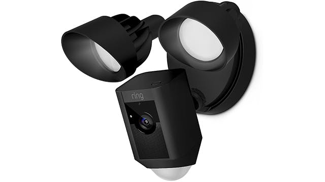 De Ring Floodlight Cam heeft op potentiële insluipers hopelijk een afschrikwekkend effect. De aanwezige bewegingssensor heeft een fors bereik van 270 graden, waarna er in het donker twee felle schijnwerpers aanspringen. Volgens de fabrikant zijn personen ‘s nachts nog herkenbaar tot een afstand van dertig meter. Bovendien gaat er op verzoek van de huiseigenaar eventueel een loeiharde sirene af met een volumeniveau van 110 decibel. De cameralens biedt een resolutie van maximaal 1080p en een kijkhoek van 140 graden.