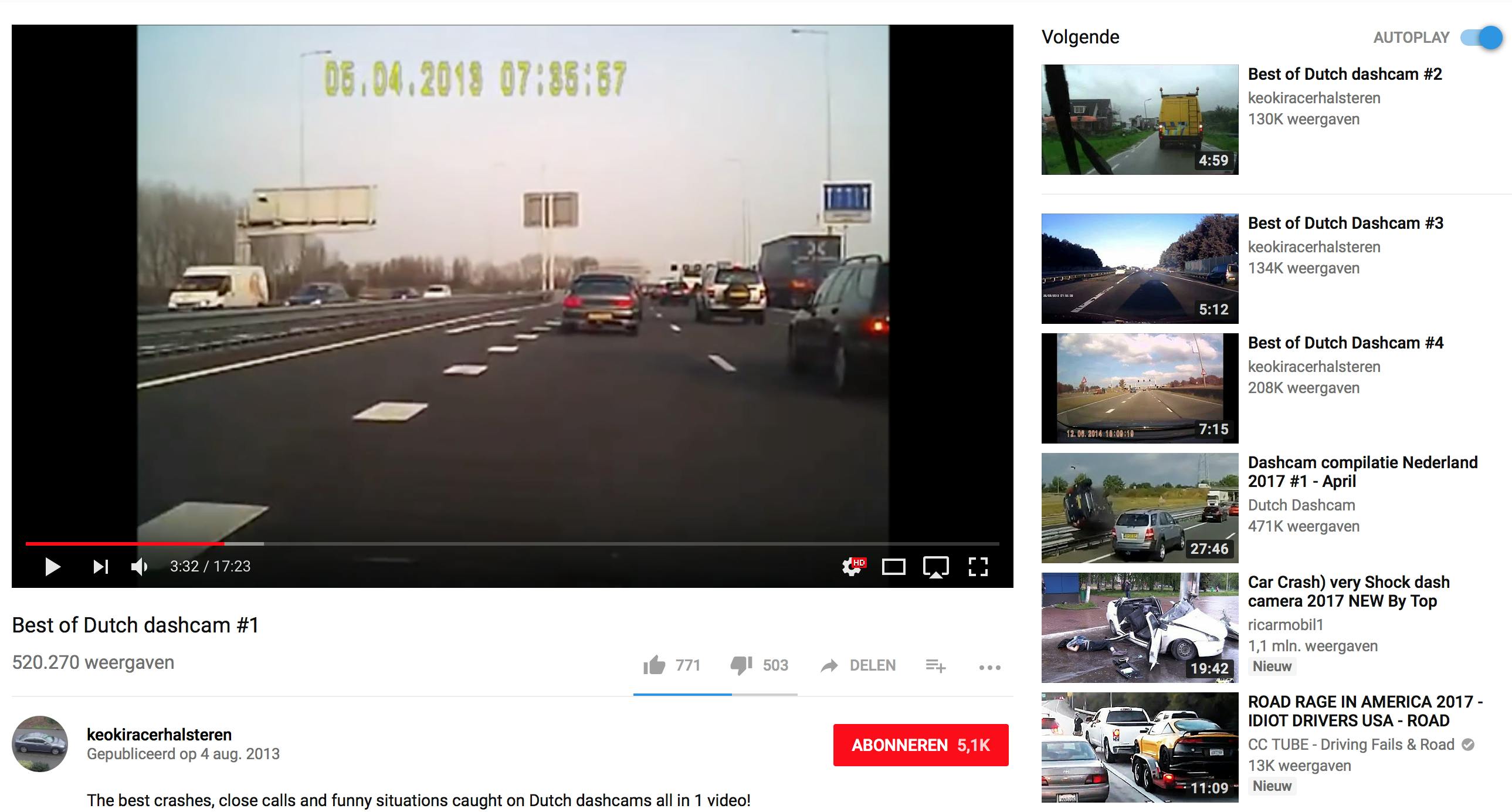 Het is aan te raden om een dashcam aan te schaffen die genoeg materiaal op kan nemen