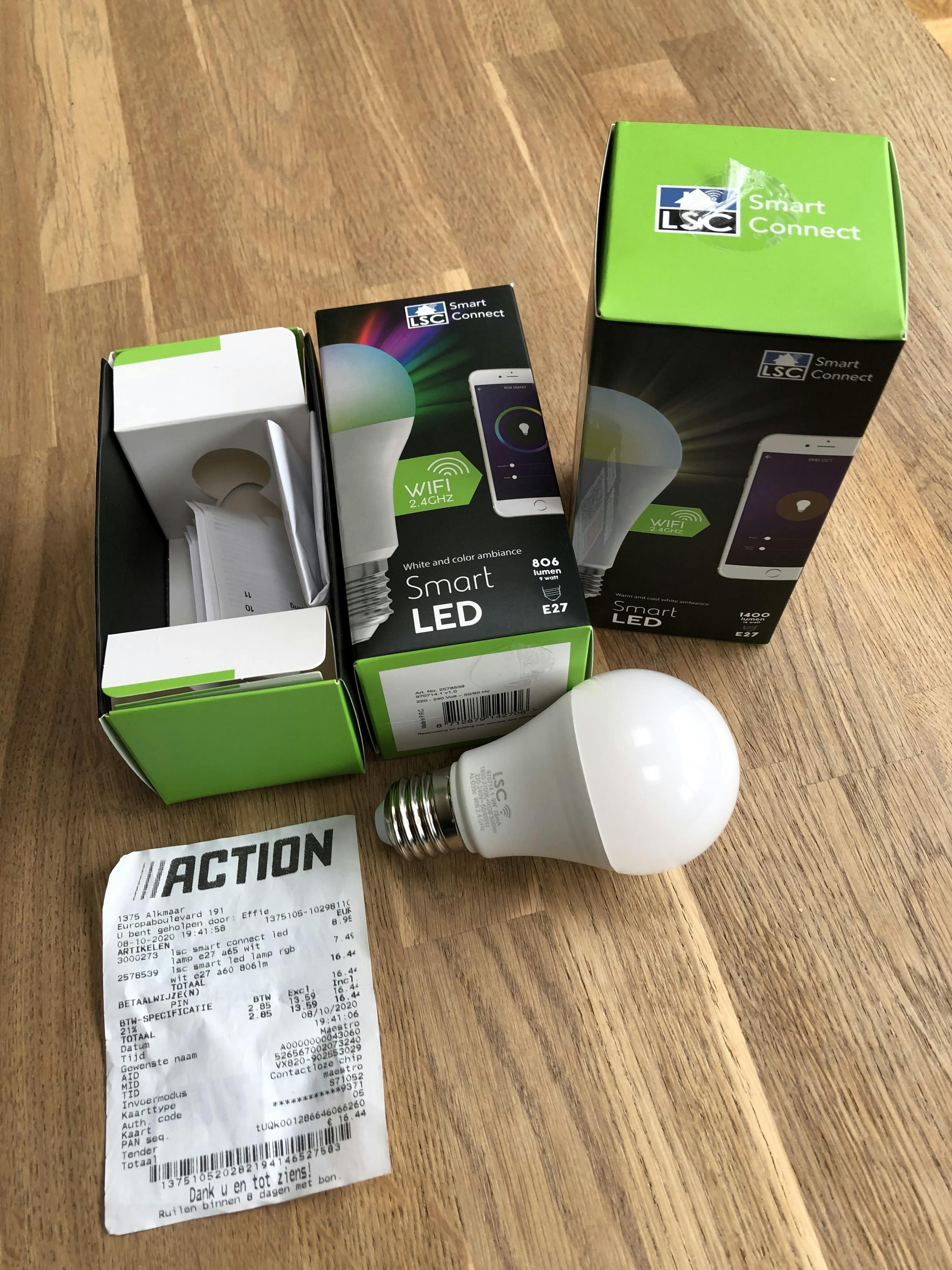 Overigens vormen de twee besproken peertjes slechts het topje van de ijsberg, want Action verkoopt onder de merknaam LSC Smart Connect nog veel meer slimme lampen en randaccessoires. Een verbindingshub is niet nodig. De ledlampen communiceren namelijk rechtstreeks met het wifi-netwerk via de 2,4GHz-frequentieband. Zodra je de verlichting inschakelt, gaat het peertje snel knipperen. Dat stopt pas zodra de slimme lamp is verbonden met het draadloze thuisnetwerk.