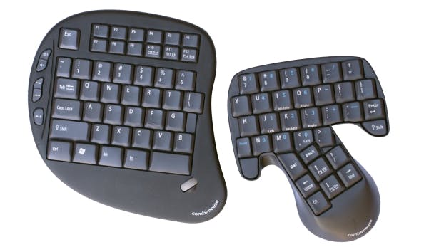 De meeste ergonomische toetsenborden hebben een kleine kromming en zijn gesplitst in een linker- en rechtergedeelte. Je handen rusten op een zacht gedeelte onder het toetsenbord en met je duimen bedien je de spatiebalk. Sommige toetsenborden nemen de toetsenbord-splitsing wel heel erg serieus, zo bestaat de Kinesis Freestyle Solo Keyboard uit twee daadwerkelijk gescheiden delen die met een kabel zijn verbonden. Zo kun je zelf de kromming bepalen door eenvoudig de twee delen op de voor je beste manier op je bureau te leggen.