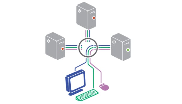 Als je twee computers in je huis hebt staan en je wil deze met één toetsenbord en één muis besturen, dan heb je een zogenaamde KVM-Switch nodig. Je sluit je muis en toetsenbord op de usb-poorten van de switch aan, je monitor verbindt je eveneens met de switch. Je deelt namelijk naast de muis en het toetsenbord ook het beeldscherm, dit bespaart een hoop ruimte op je bureau.