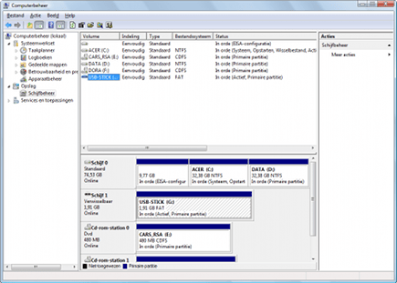 Als u een bepaalde usb-stick veel gebruikt, kan het handig zijn om deze een vaste schijfletter toe te kennen. Dat is met name handig als u al veel schijfletters in gebruik hebt (door meerdere partities, dvd-spelers en bijvoorbeeld een kaartlezer) en ook andere externe apparatuur gebruikt (zoals bijvoorbeeld een externe harde schijf). Als u wilt dat uw usb-stick steeds bereikbaar is via dezelfde schijfletter, dan kunt u dat instellen onder Schijfbeheer (rechtklikken op Deze Computer en dan op Beheren). De betreffende schijfletter wordt dan gereserveerd voor uw usb-stick. Tip: wilt u een makkelijk te onthouden letter? Kies dan voor bijvoorbeeld: A: of B: (voor diskettestations die toch niet meer gebruikt worden) of X: of Z:. Uw usb-stick staat dan altijd onder- of bovenaan.