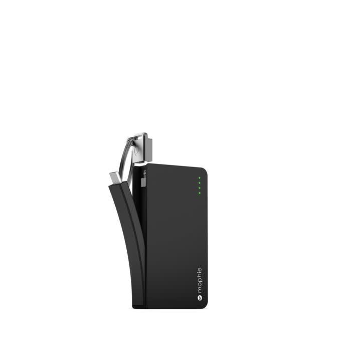 Zoals eerder gezegd bestaan er ook piepkleine powerbanks. Deze mophie power reserve is er eentje in sleutelhangerformaat. De compacte powerbank is voorzien van een geïntegreerde micro-usb- of Lightning-kabel en heeft een capaciteit van 1.350 mAh. Dankzij de vier ledlampjes kun je op elk ogenblik aflezen hoeveel energie er nog overblijft. Het lichtgewicht weegt amper 56 gram en is beschikbaar in zwart, wit en rood.