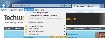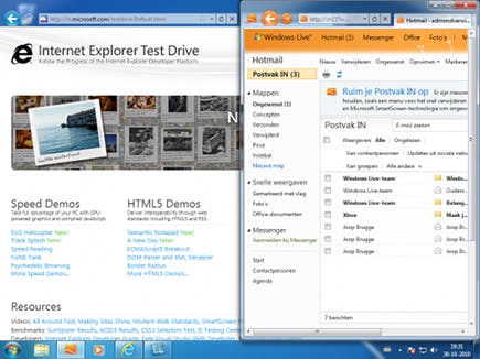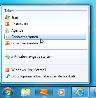 Als u Internet Explorer 9 gebruikt onder Windows 7, is het mogelijk om favoriete websites direct vanaf de taakbalk te starten. Hiervoor moet u de link naar de betreffende website vastpinnen op de taakbalk. Sleep de tab waarin de site is weergegeven naar de taakbalk en laat hem daar los. U zult zien dat er een IE-pictogram op de taakbalk wordt geplaatst. Als u op dit pictogram klikt, wordt de site direct geopend. Erg handig, bijvoorbeeld om snel in te kunnen loggen op Hotmail.