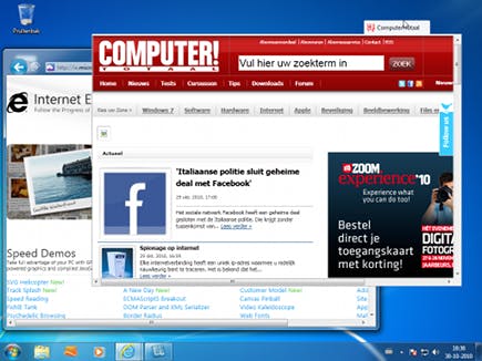 Ook sites geopend in een tabblad kunnen nu via Aero Snap aan de schermrand worden geklikt.