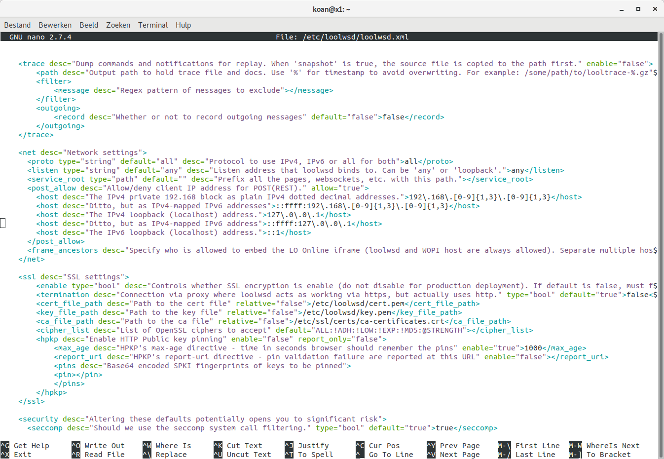 nano /etc/loolwsd/loolwsd.xml