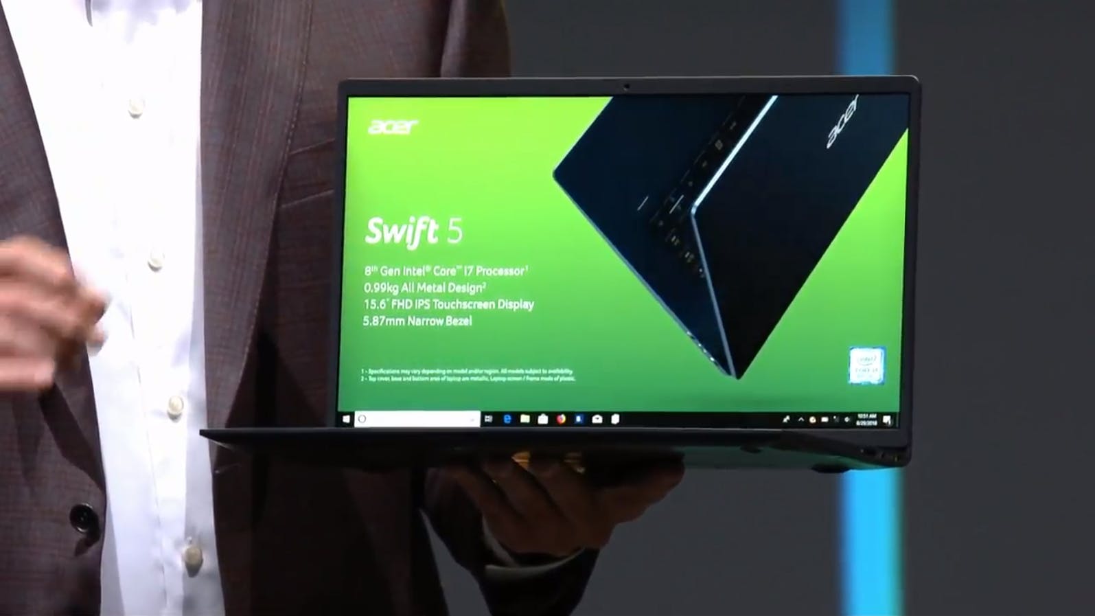 De Swift 5 en Swift 7 zijn later dit jaar in nieuwe uitvoeringen te koop. Ze zijn nog dunner en lichter dan de vorige generatie, wat te danken is aan de kleinere schermranden. Zo stapt de nieuwe Swift 5 van een 14-inch scherm over op een 15-inch scherm, zonder dat de notebook meer ruimte inneemt. De Swift 7 heeft een even groot scherm als zijn voorganger, maar is toch een compacter apparaat door een screen-to-body-ratio van 92 procent.