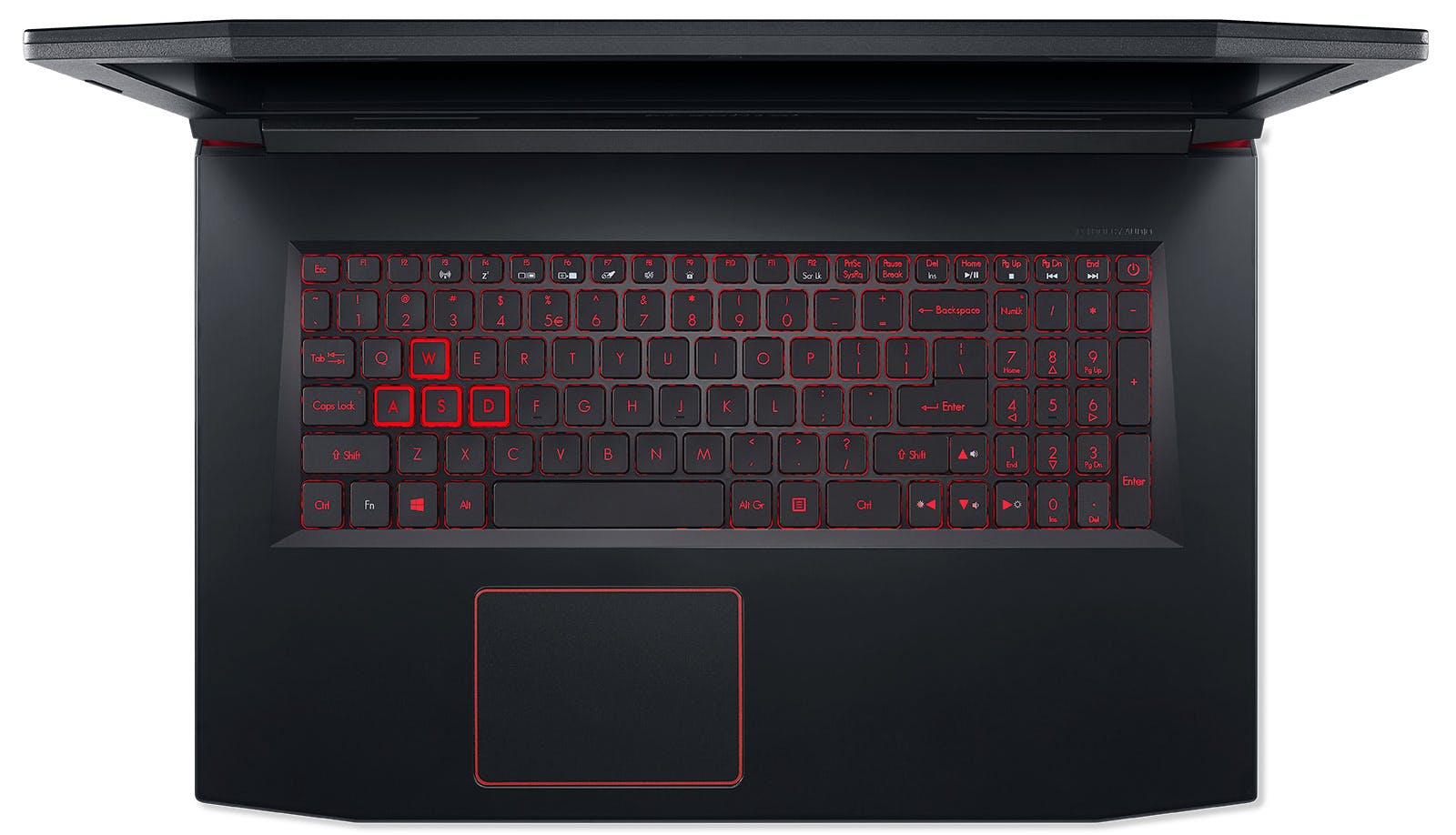 Het toetsenbord is netjes in de behuizing geïntegreerd en valt op door de rode WASD-toetsen, een teken dat de Predator echt een gaminglaptop is. De toetsen zijn geheel in overeenstemming met de rest van het ontwerp voorzien van rode verlichting. De aanslag is prima en het geheel buigt vrijwel niet door bij enthousiast tikken. De touchpad is een multitouch-exemplaar met geïntegreerde fysieke knop. Alle instellingen kun je via de normale instellingen van Windows 10 doorvoeren en ook de gebaren met drie en vier vingers werken soepel. De fysieke click van de touchpad is wel vrij zwaar.