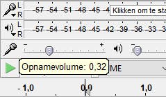 Staat het volume naar jouw mening te laag of te hoog ingesteld? Je bepaalt zelf op welk volumeniveau je pc de opname vastlegt. Gebruik hiervoor de schuifregelaar achter het microfoontje in de werkbalk. Stel een logische waarde in voor het opnamevolume en neem weer een stukje van de lp op als proef. Probeer op deze manier het optimale volumeniveau voor je opname te bepalen.
