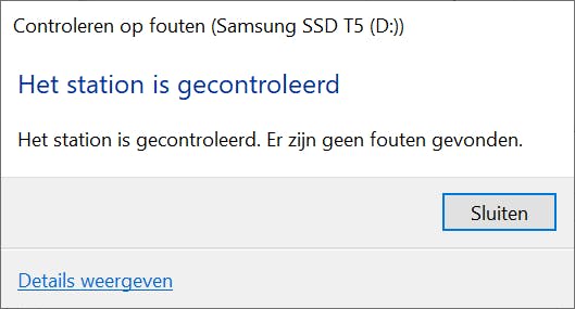 In Windows 10 worden de schijven automatisch op een goede gezondheid gecontroleerd. Dat is belangrijk, omdat je hiermee de kans op gegevensverlies zo klein mogelijk maakt. Vertrouw je een bepaalde schijf niet, dan hoef je je niet afhankelijk op te stellen van Windows. Je kunt Foutcontrole ook handmatig uitvoeren. Open Verkenner (Windows-toets+E) en klik met de rechtermuisknop op de schijf die je wilt controleren. Kies Eigenschappen. Op het tabblad Extra zoek je de sectie Foutcontrole. Klik op de knop Controleren. Klik tot slot op Station scannen. Na de controle klik je op Details weergeven voor een uitgebreid rapport van de scan.