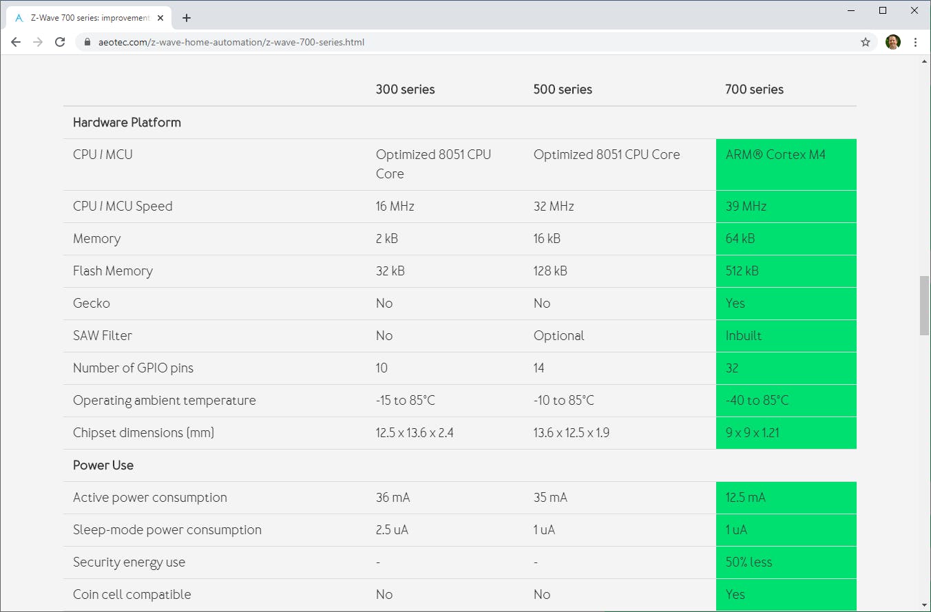 De Z-Wave-technologie is sinds 2018 in handen van Silicon Labs, dat het kocht van Sigma Designs. Dat lijkt goed nieuws voor de standaard, want Silicon Labs is een grote speler in de chipmarkt én heeft een focus op IoT. Het bedrijf heeft de ambitie om er een volledig open standaard van te maken, door ook andere fabrikanten toe te laten. Nu al kunnen andere fabrikanten een deel (de radio) maken. De meeste apparaten zijn voorzien van Z-Wave Plus. Dat betreft ofwel de 500-serie of de nieuwe, in 2019 uitgebrachte, 700-serie. Opmerkelijk aan die laatste serie is dat producten met de chip bij optimalisatie een batterijduur van 10 jaar kunnen hebben. Bij de 500-serie was dat maar 1,5 jaar. Handig voor bijvoorbeeld een deur- of raamsensor, waar je liever niet jaarlijks een nieuwe batterij in stopt. Ook het bereik is wat verbeterd tot 800 meter in open veld en 100 meter binnenshuis. De standaard werkt ook responsiever door een snellere chip en is veiliger. De 500-serie bracht al drie extra optionele beveiligingslagen, die in de 700-serie worden verplicht en bovendien zijn verbeterd.