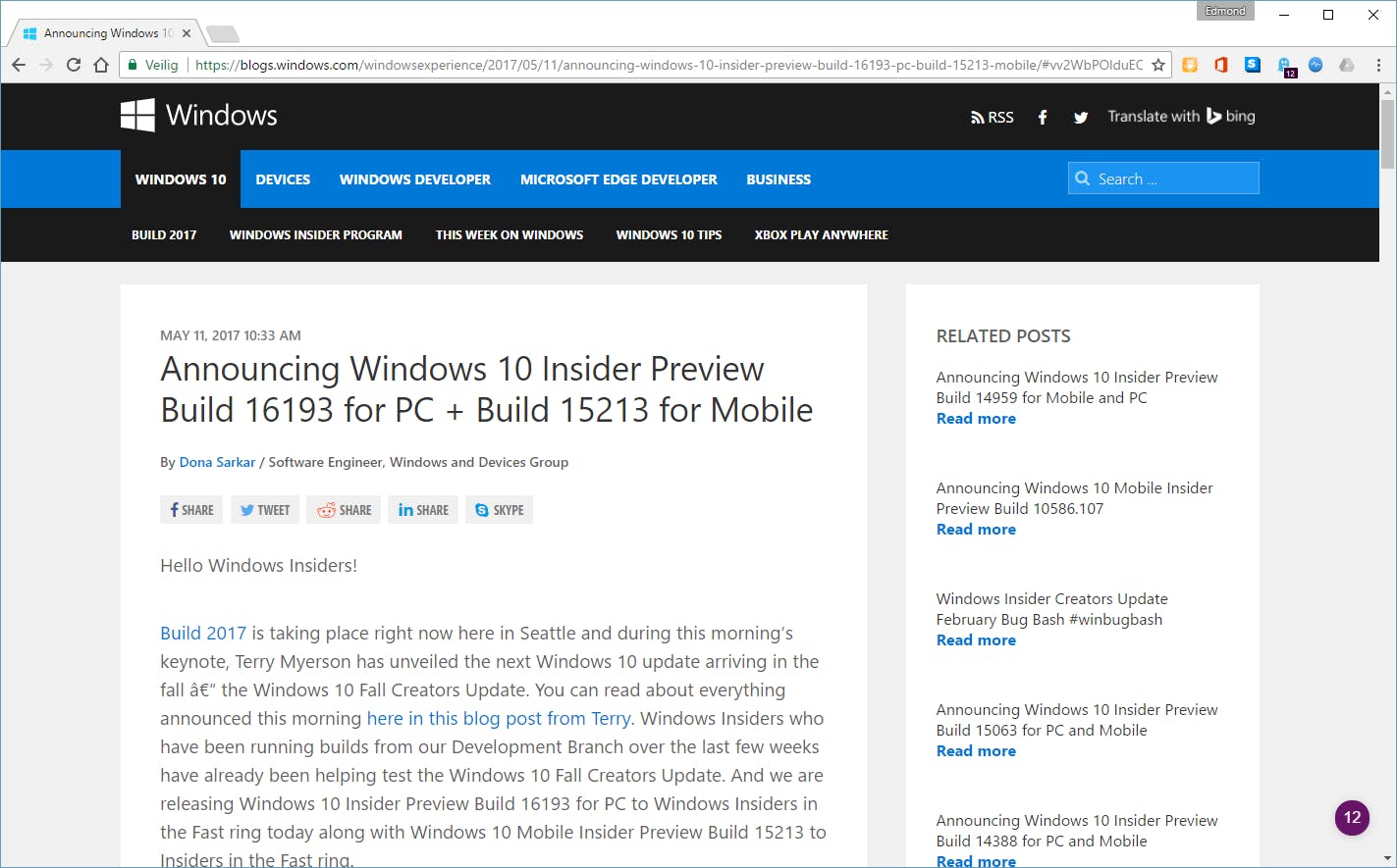 Nog maar enkele jaren geleden werkte Microsoft jarenlang in het grootste geheim aan een nieuwe versie van Windows om die dan in één keer en met veel tromgeroffel uit te brengen. Die dagen zijn voorbij. Aan Windows 10 wordt nu continu gewerkt en de ontwikkelaars brengen vaak meermaals per dag een nieuwe versie van het besturingssysteem uit. De meeste versies zijn alleen voor intern testwerk, maar steeds vaker komen sommige van deze versies ook gewoon beschikbaar voor iedereen die graag met de nieuwste Windows wil werken. Microsoft heeft er zelfs een speciaal project van gemaakt: het Windows Insider-programma. Zit je in dat programma, dan krijg je regelmatig een update die gewone Windows-gebruikers niet krijgen, waarna je de nieuwste versie van Windows op jouw pc hebt staan, rechtstreeks uit de softwarefabriek van Microsoft.