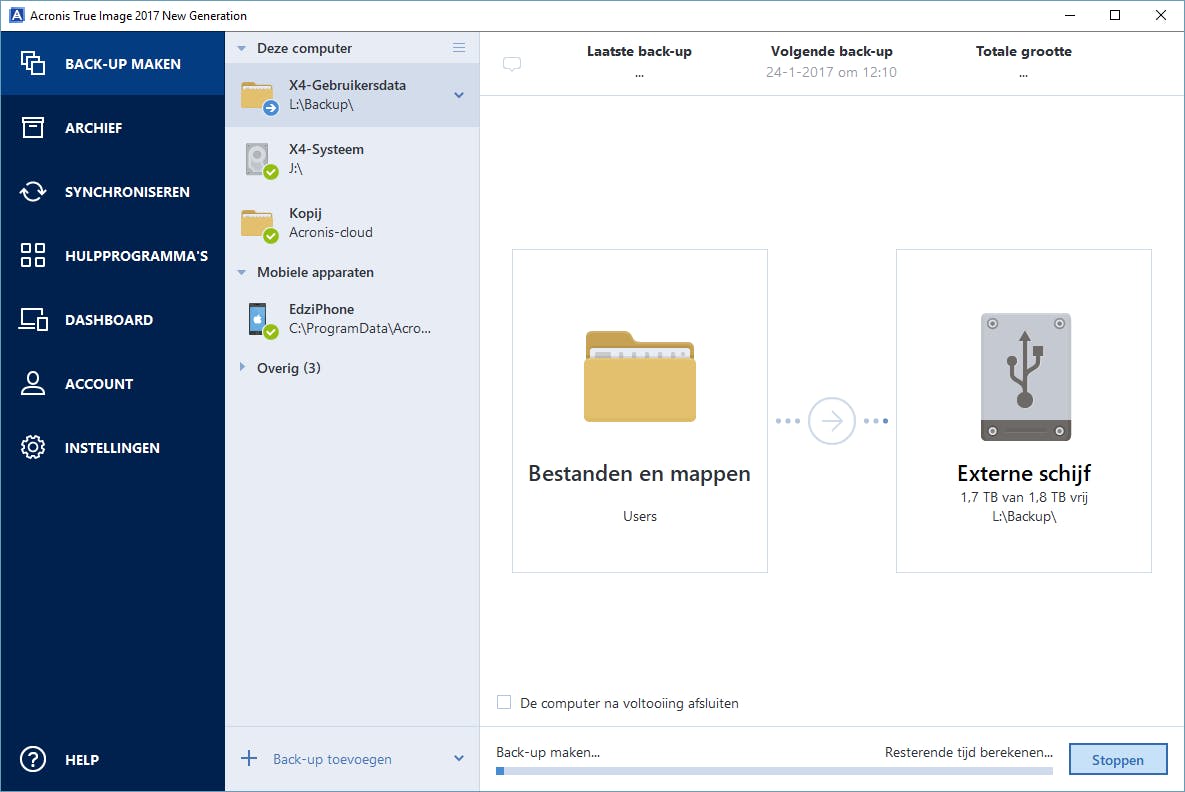 Nog wel belangrijk voor je begint met de Insider-builds, is te zorgen voor systeemherstel en databack-up. Zorg ervoor dat je bij problemen altijd terug kunt naar de computer voordat je de tussentijdse versies van Windows ging gebruiken en zorg er bovendien voor dat je door de testversies geen gegevens verliest. Voor systeemherstel zijn er meerdere opties zoals Systeemherstel van Windows 10 en het Herstelstation, maar onze favoriet is toch een volwaardig back-upprogramma zoals Acronis True Image of het gratis EaseUS Todo Backup Free. Daarmee maak je in een handomdraai een systeemhersteldisk om de pc mee te starten en een Windows-image te herstellen, en kun je ook alle data veilig back-uppen. Bewaar de back-ups het liefst op een externe usb-schijf of een nas, zodat je de back-up ongevoelig is voor systeemfouten en malware.