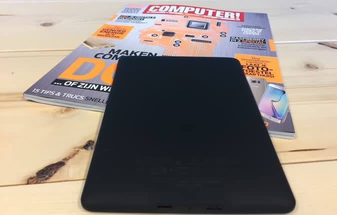 De minimalistisch vormgegeven behuizing voelt stevig aan en is aan de achterkant rubberachtig afgewerkt waardoor de e-reader niet snel uit je hand glijdt. Ik zou je overigens aanraden om de bijbehorende lederen hoes (ongeveer 30 euro) aan te schaffen. Een E Ink-scherm is namelijk een stuk kwetsbaarder dan een bijvoorbeeld een tabletscherm.