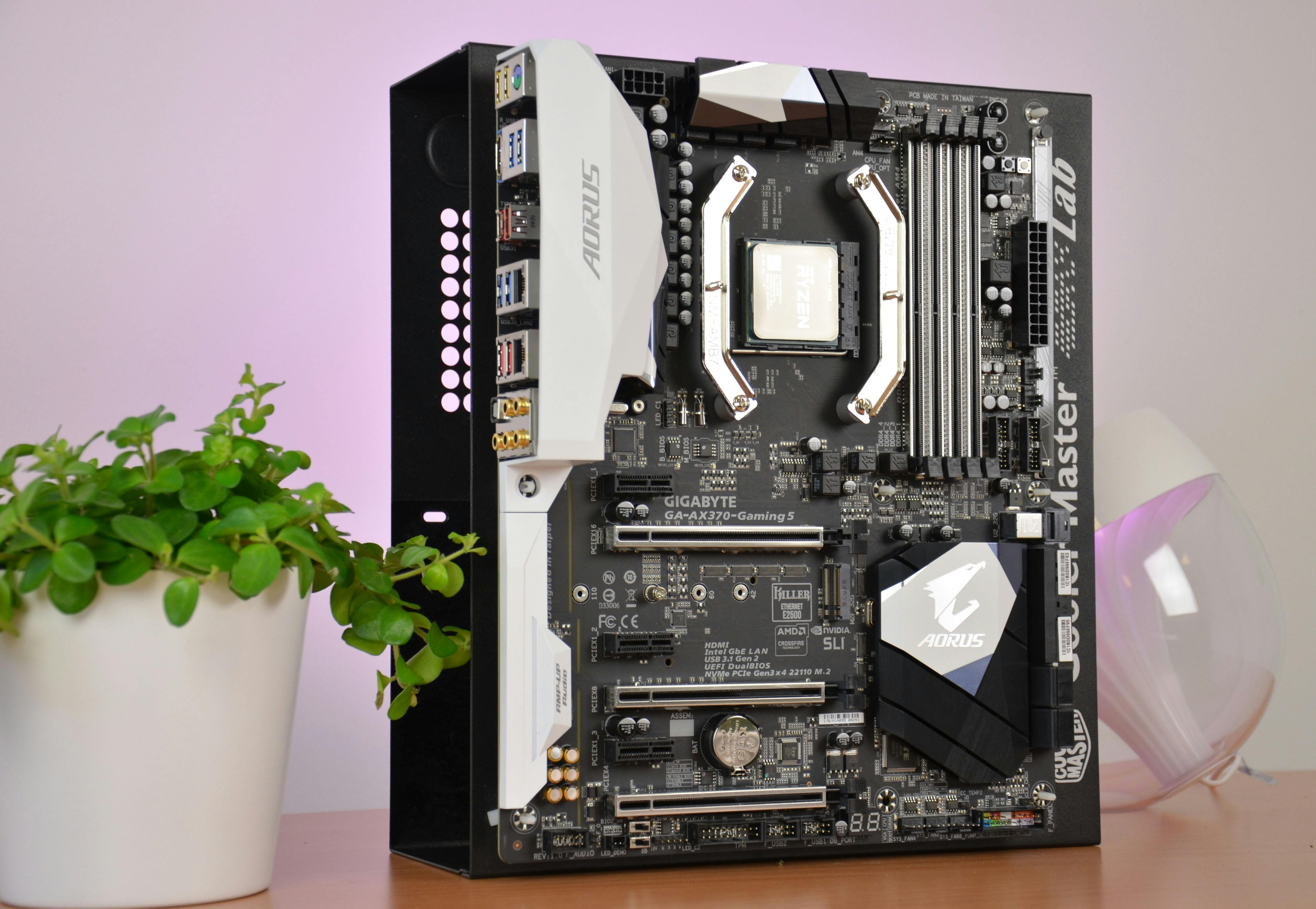 Een geschikt moederbord kiezen voor je Ryzen-cpu begint met de keuze voor de geschikte chipset en die is er in verschillende varianten. De hoogst gepositioneerde is de X370-chipset die gebruikt wordt op moederborden zoals de Gigabyte X370 Aorus Gaming 5 die wij voor deze test gebruikten. Moederborden op basis van deze chipset bieden de optie om meerdere grafische kaarten te gebruiken in sli of crossfire, en hebben meer sata- en usb-poorten dan de lager gepositioneerde modellen. Moederborden met de letter X in de chipset bieden gecombineerd met een cpu met de letter X erin (bijvoorbeeld de Ryzen 7 1800X) ook een hogere automatische boost- of overkloksnelheid via de XFR-technologie. Kies je voor een X-cpu, schaf dan ook een X-moederborden aan.