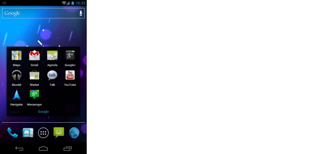 Het startscherm van Ice Cream Sandwich.