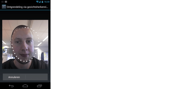 Ook valt meteen op dat u op de startschermen van Android nu ook applicaties kunt groeperen. Dit doet u door een snelkoppeling op een andere te plaatsen. Ook de vier knoppen onderaan het startscherm kunnen gegroepeerd worden. In het overzicht van applicaties zit nog een opvallende verandering in het ontwerp. De zogeheten 'app drawer' is geen lange verticale lijst meer met alle apps onder elkaar, maar wordt in verschillende pagina's opgedeeld. Bovenin ziet u twee tabbladen, waarmee u kunt wisselen tussen het app-overzicht en het widget-overzicht. Een andere leuke functie is de mogelijkheid om het toestel te ontgrendelen door middel van gezichtsherkenning. Bij het instellen van deze beveiligingsmogelijkheid hebt u een front-camera nodig, waarmee het toestel uw gezicht opslaat. In het vervolg kunt u het toestel weer ontgrendelen met uw gezicht voor de front-camera. Op zich werkt dit prima, er is alleen een groot mankement: de telefoon is ook te ontgrendelen met een foto.