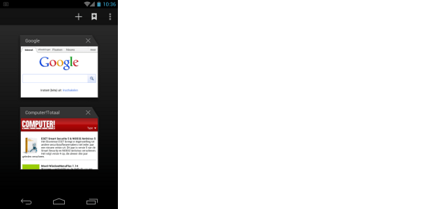 Google heeft flink geknutseld aan de vierde versie van Android. Op het eerste oog lijkt het alsof Google versie 2.3 (voor smartphones) en versie 3.2 (voor tablets) samen in de blender heeft gegooid, en vervolgens het resultaat heeft bijgevijld. Wanneer u het besturingssysteem voor het eerst in gebruik neemt, valt meteen op dat de functie van de menu-knop onderaan het toestel veranderd is. Deze knop leidt niet meer naar de instellingen van het proces in het getoonde venster, maar geeft direct een overzicht weer van de draaiende applicaties. In dit overzicht kunt u gemakkelijk een (op de achtergrond draaiende) applicatie sluiten door deze naar links of rechts uit beeld te slepen. Na enige gewenning is dit eigenlijk heel logisch en prettig, want zo hebt u altijd een app-killer bij de hand. De instellingen die u tot voorheen met die knop bereikte zijn nu in de rechteronderhoek of rechterbovenhoek te vinden onder de knop met drie verticaal geplaatste puntjes. Deze knop verschijnt alleen wanneer er instellingen beschikbaar zijn.
