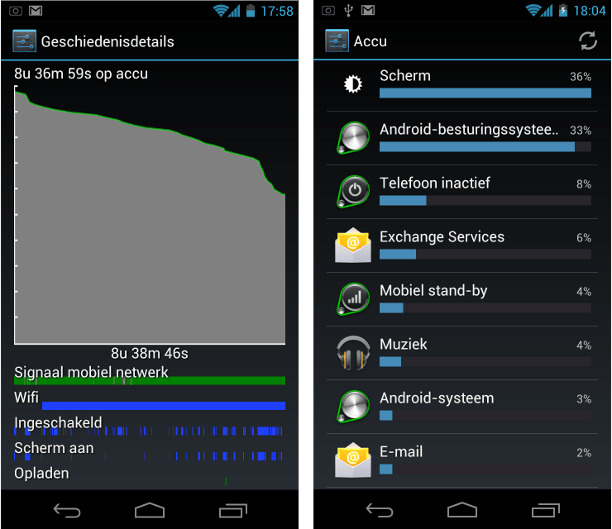 Het zijn vooral de kleine dingetjes die ervoor zorgen dat u na Android 4.0 niet meer terug wilt naar een oudere versie. Het toetsenbord is accurater, de camera werkt prettiger, er is een panoramamogelijkheid en kunt u foto's direct in de galerij bewerken. Vooral de panoramafunctie is een leuke aanvulling. U drukt op de opnameknop en beweegt het toestel naar links of rechts. De camera monteert het geheel tot een panoramafoto. In praktijk blijkt dat de resultaten soms te wensen overlaten. Beelden zijn wazig en de overgangen tussen de foto's zijn vaak duidelijk te zien. Het is de bedoeling dat u nogal nauwkeurig en met een vaste hand te werk gaat. Na enkele oefenpogingen zult u merken dat de resultaten van uw panoramafoto's van betere kwaliteit zijn. Helaas kan het nog niet tippen aan de kwaliteit van panoramafoto's die samengesteld zijn met speciale software. Nog een mooie verbetering zit in de browser. Het is nu mogelijk om uw browsegegevens zoals bladwijzers te synchroniseren, er zijn (onder een knopje) tabbladen verschenen en de navigatie werkt een stuk sneller. De fijnste toevoeging is de aparte app met een datameter, die in een grafiek toont hoeveel data u verbruikt. Hierbij worden data over 3G en wifi van elkaar gescheiden. Bovendien kunt u een limiet aangeven. Een bijzonder welkome aanvulling na de verlaging van de limieten in het najaar van 2011. Er zijn ook andere statistieken opvraagbaar, zoals de stand-by-tijd, de tijd die u verbonden bent met bijvoorbeeld wifi of bluetooth, of welke processen de meeste batterijcapaciteit opslokken.