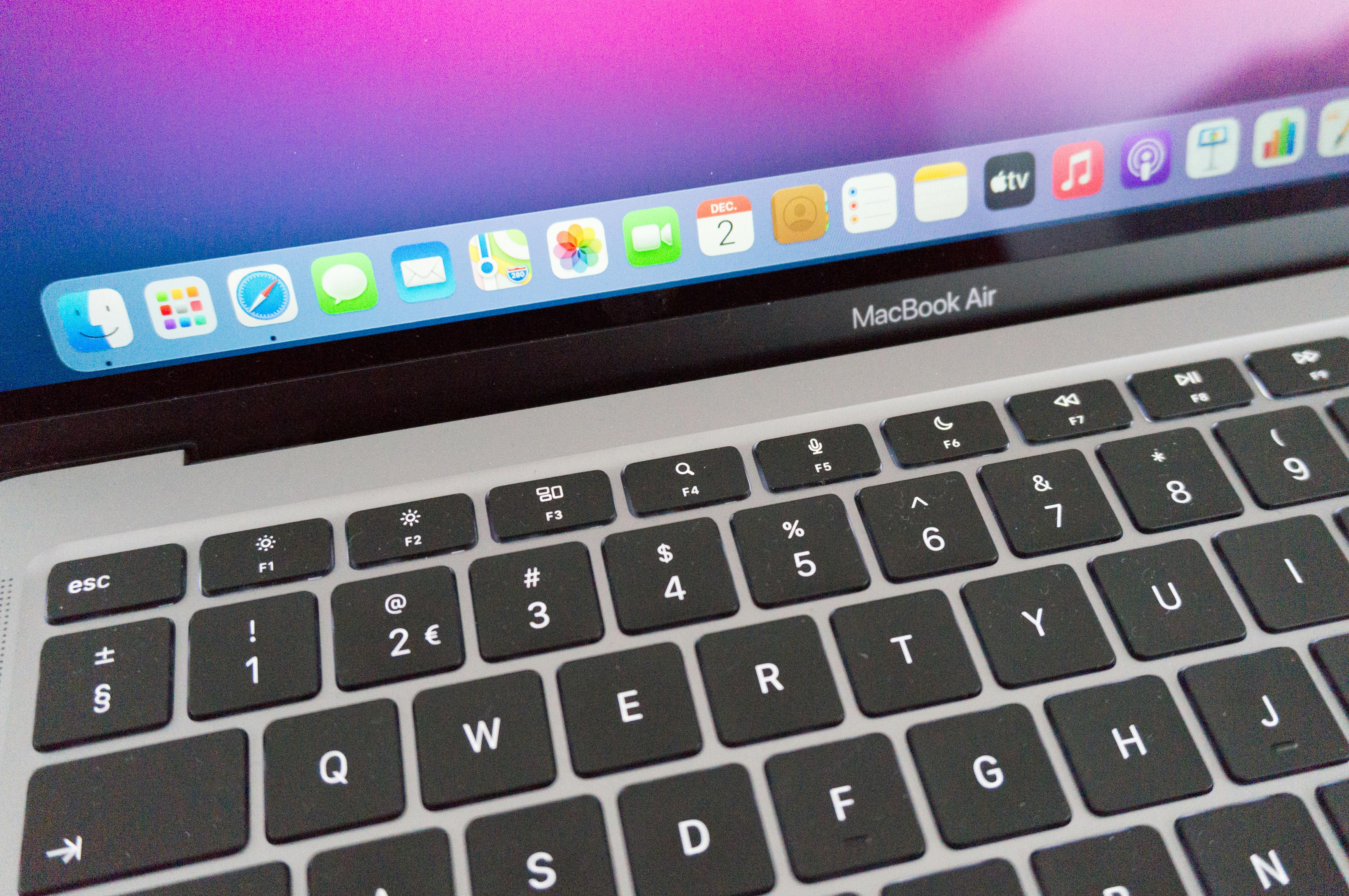 Het toetsenbord is net als de MacBook Air die eerder dit jaar uitkwam een Magic Keyboard dat gebruik maakt van toetsen met een schaarmechanisme. Dit toetsenbord tikt lekkerder met meer travel dan het butterfly-toetsenbord dat Apple een aantal jaar gebruikt heeft. De Force-Touch touchpad is net als op eerdere modellen uitstekend, dit is wat mij betreft de beste touchpad die op de markt is. Qua comfort heb ik dus geen klachten. Wel vond ik het als gebruiker van een andere MacBook enigszins onhandig dat de toetsen om de toetsverlichting in te stellen verdwenen zijn. Bij de introductie van een nieuwe versie van macOS verandert Apple soms iets aan de functionaliteit die onder de functietoetsen hangt en voor Big Sur is dat kennelijk het geval. De toets voor applicatieoverzicht Launchpad is vervangen door een toets die zoekvenster Spotlight opent, dat is op zich een handige verandering wat mij betreft. Een beetje onhandig is echter dat de toetsen voor het aanpassen van de toetsverlichting vervangen zijn door toetsen voor dicteren en het inschakelen van een niet storen-modus. Wil je de toetsverlichting aanpassen, dan moet je nu op een pictogram in de menu-balk klikken en vervolgens nogmaals klikken om de schuifregelaar in beeld te krijgen.