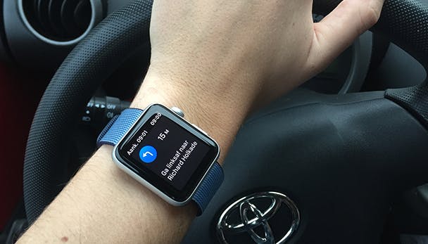 De Apple Watch is in feite een verlengstuk van je iPhone, doordat deze op een toegankelijke samenwerkt met wat je op je iPhone doet. Ben je aan het hardlopen? De Apple Watch toont de afstand, aantal stappen en verbrande calorieën. Navigeer je in het verkeer met Kaarten? De Apple Watch geeft een trilsignaal als je een afslag moet pakken en laat zelfs zien welke afslag je moet hebben. Een slim detail is dat de Apple Watch altijd een trilsignaal geeft bij een afslag, maar het scherm alleen activeert als hij een bepaalde beweging van je pols detecteert. Zo gaat navigeren niet ten koste van de batterijduur.