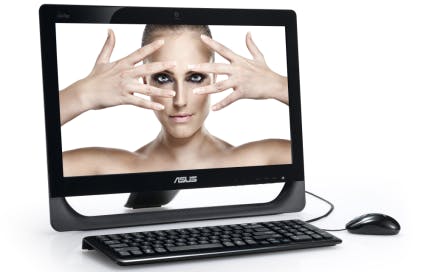 De Asus EeeTop is een fraaie all-in-one pc die erg slank oogt op het bureau. Net als de oneTwo M van Packard Bell is de EeeTop voorzien van een 20inch-scherm met een resolutie van 1600 x 900. De grafische mogelijkheden worden verzorgd door de tweede generatie NVIDIA ION. Gamen is, zoals bij alle ingebouwde grafische chips, vrijwel onmogelijk, maar het afspelen van HD-video vormt geen probleem. De Asus EeeTop PC ET2010PNT wordt aangedreven door een Intel Atom D510. Dit is een exemplaar met twee kernen voorzien van hyperthreading, waardoor Windows vier kernen ziet. Het klinkt indrukwekkend, maar het blijft nog steeds een Atom op 1,66 GHz. Dit is dan ook de langzaamste machine in de test. Dat Asus slechts 2 GB geheugen heeft geplaatst, is eveneens niet bevorderlijk voor de snelheid. Wij vinden de EeeTop er erg mooi uitzien, maar hij is net iets te duur. Afgezien van het weergeven van HD-video is de EeeTop immers een stuk minder krachtig dan vergelijkbare all-in-ones die niet op een Atom-processor draaien.