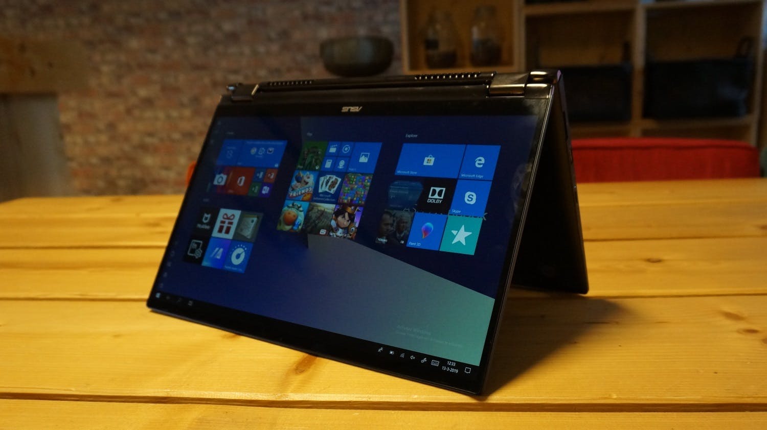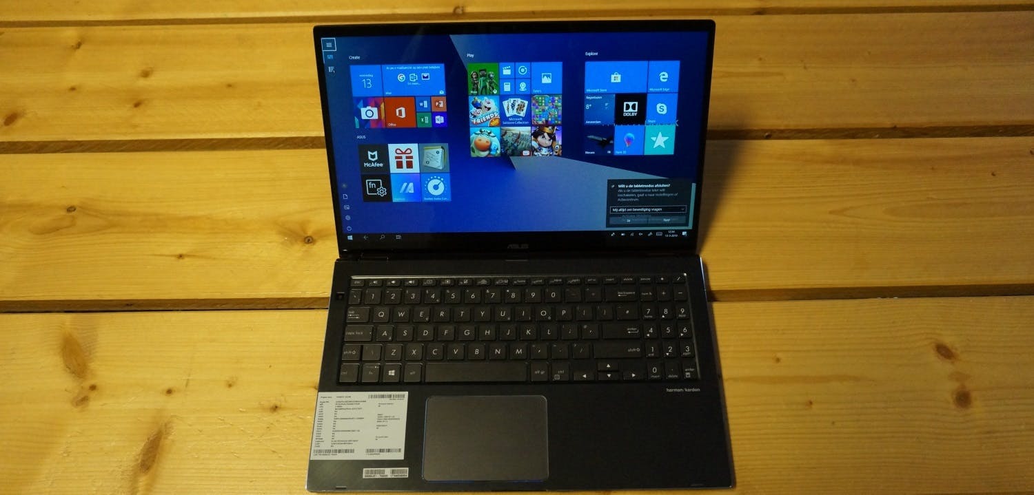 De Asus ZenBook Flip 15 een krachtige notebook in een relatief slanke verpakking die ook nog eens als forse tablet te gebruiken is. Ondanks de dunne behuizing heeft Asus toch een quadcoreprocessor en een Nvidia GeForce GTX 1050 verwerkt waardoor de laptop voor vrijwel alle werkzaamheden en gamen te gebruiken is. Een opvallend pluspunt is de ruime accu die de ZenBook Flip 15 een lange werktijd geeft waardoor je moeiteloos heel de dag kunt werken zonder hem bij te laden. Een minpunt is dat het scherm een lage maximum helderheid heeft en dat de usb-c-poort slechts van het type 1 is en opladen of video niet ondersteunt. De variant die wij getest hebben is niet te koop, maar een vergelijkbare variant met full hd-scherm, een iets langzamere Core i5-processor, 16 gigabyte ram en grotere ssd kost 1499 euro. Dat is al aan de prijs, wil je zoals in ons testmodel een Core i7-processor dan komt daar automatisch een 4k-scherm bij en betaal je 1799 euro.