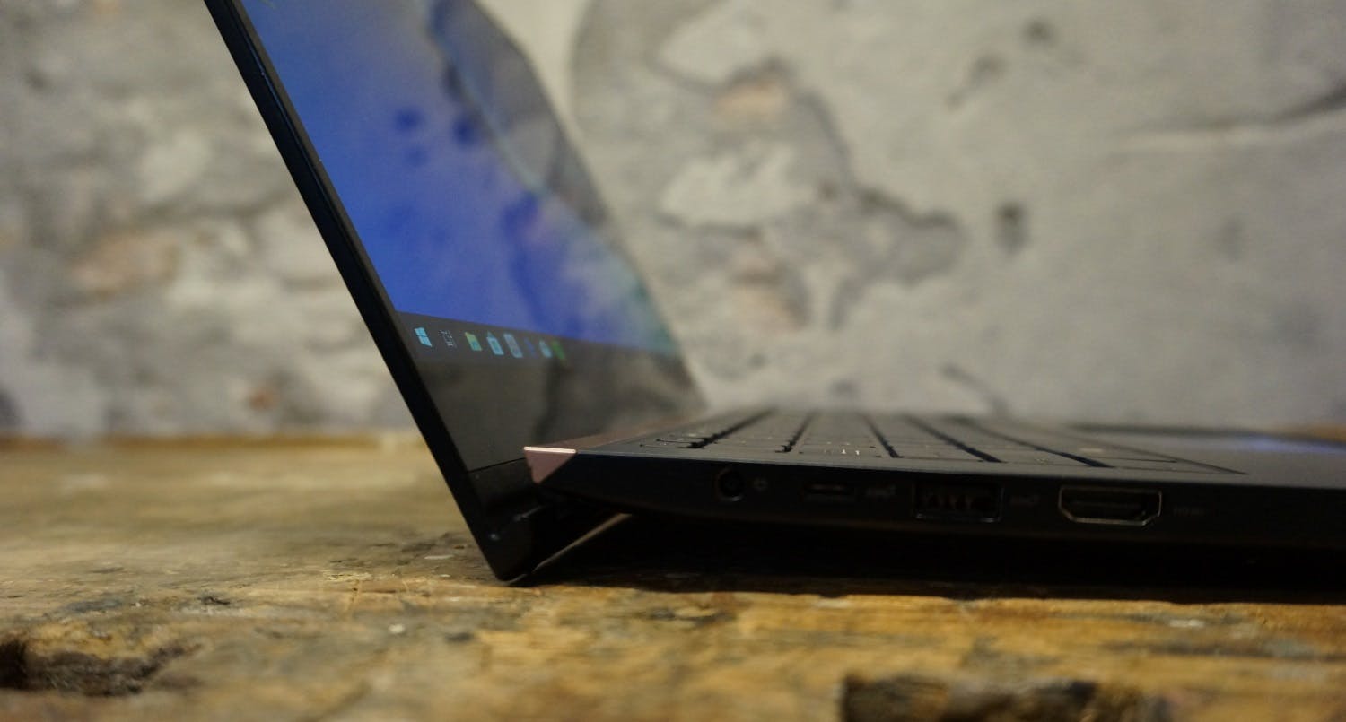 Qua aansluitingen heeft de ZenBook alles dat je op een moderne laptop kunt krijgen. De twee usb-c-poorten ondersteunen Thunderbolt 3 en zijn behalve als razendsnelle aansluitingen ook inzetbaar als DisplayPort-aansluitingen. De normale usb3.1-poorten ondersteunen net als de usb-c-poorten de snelste Gen2-variant van usb 3.1, iets dat we niet vaak zien. Een hdmi-aansluiting, 3,5mm-headsetaansluiting en microSD-kaartslot maken de aansluitingen af. Het enige dat je op een pro-laptop wellicht mist is een netwerkaansluiting, maar daar zijn genoeg snelle usb-poorten voor voorhanden waar je een adapter op kunt aansluiten. De ingebouwde wifi-adapter is van Intel en is een 2x2-exemplaar, iets dat in de praktijk prima voldoet.