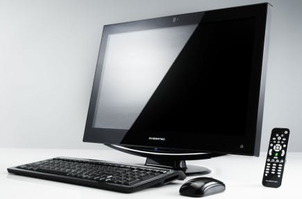 De Avaratec B2 is met zijn 25,5inch-beeldscherm geen kleine jongen. Ook de binnenkant is kan met een Intel Core 2 Quad Q9400 en 4 GB geheugen krachtig genoemd worden. Qua ontwerp lijkt de behuizing meer op een televisie dan op een computer. De pc wordt zelfs inclusief een afstandsbediening geleverd. Deze afstandsbediening is op te bergen in het toetsenbord dat prettig tikt. Over de meegeleverde muis zijn we niet enthousiast. De dvd-brander is netjes weggewerkt in de zijkant. Iets dat opvalt is dat de computer aan de achterkant onder andere een DVI-uitgang heeft. Bijzonder, dat zien we niet vaak op een alles-in-een pc. Hierdoor kunt u op de B2 met een dual monitor setup werken of de computer aansluiten op bijvoorbeeld een nog grotere televisie of beamer.