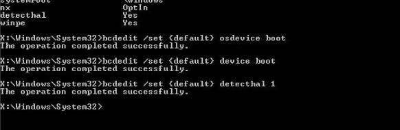 bcdedit /set {default} osdevice boot
