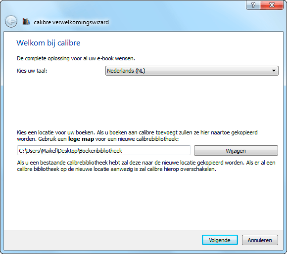 Calibre (voorheen Libprs500) is een opensource-programma dat al sinds 2006 bestaat. In de afgelopen jaren is de freeware uitgegroeid tot een veelzijdig hulpmiddel om uw collectie met e-books te beheren. U vindt de nieuwste versie op Calibre-eBook.com. Calibre is beschikbaar voor Windows, Mac OS X en Linux. Er is ook een portable editie, die u niet hoeft te installeren maar direct vanaf bijvoorbeeld een usb-stick kunt gebruiken. In deze cursus gaan we uit van de Windows-versie. Als u Windows XP, Vista of 7 gebruikt, installeert u het programma probleemloos via een msi-bestand. Zodra u de stappen van de installatiewizard hebt doorgenomen, start u de freeware op. De calibre verwelkomingswizard verschijnt op uw scherm. Selecteer de Nederlandse taal en geef aan in welke map u e-books wilt bewaren. Klik op Volgende en maak kenbaar welke e-reader of tablet u gebruikt. Staat het juiste type niet in de lijst, dan selecteert u Generic. Klik op Volgende en Finish om het hoofdvenster te openen. Overigens komt calibre vrijwel elke week met een update die bugs verhelpt en kleine nieuwe funties toevoegt. U krijgt hiervan een melding in het programma, waarna u handmatig de nieuwe versie moet downloaden en installeren.