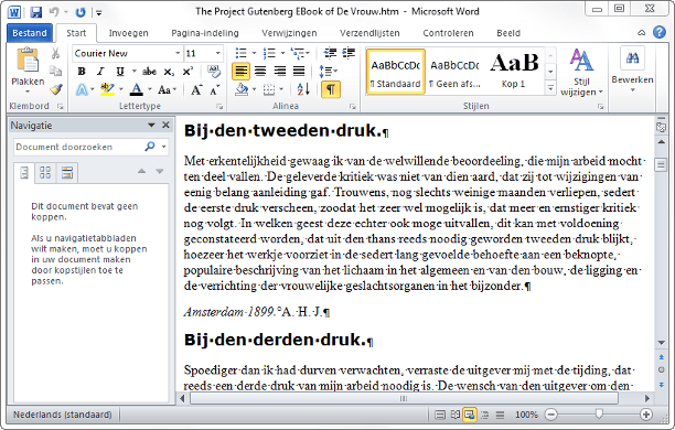 Als u een eigen boek hebt geschreven, maakt u hiervan simpel een e-book. U kunt het manuscript het beste opslaan als HTML-bestand. Calibre is namelijk in staat om dit bestandstype te importeren. Klik in Microsoft Word op Bestand en kies Opslaan als. Selecteer in het uitrolmenu achter Opslaan als: de optie Webpagina, gefilterd. Geef achter Bestandsnaam aan hoe u het manuscript wilt noemen en sluit het venster met OK. Bevestig het volgende venster met Ja. Mogelijk wist de tekstverwerker een deel van de opmaak. Het is belangrijk dat u slechts één spatie gebruikt na iedere paragraaf of alinea. Sommige spaties zijn in Microsoft Word niet zichtbaar, maar wel in calibre. Om een overdaad aan witruimte te voorkomen, maakt u verborgen spaties zichtbaar. Open het tabblad Start en klik op de knop Alles weergeven. Zorg ervoor dat er na iedere alinea of paragraaf één markering (¶) staat. U bereikt dat door ongewenste spaties te verwijderen met Backspace. Voorzie hoofdstukken en tussenkopjes van een stijlopmaak, zodat ze straks goed zichtbaar zijn in het e-book. Verder kunt u alleen afbeeldingen van het jpg-formaat laten staan. Als het manuscript compleet is, gaat u naar Bestand / Opslaan. In calibre klikt u op Boeken toevoegen. Selecteer het juiste bestand op uw computer. Via Openen belandt uw boek in het overzicht. Gebruik de knop Metadata bewerken voor het toevoegen van de juiste gegevens. Sluit het venster met OK. Tot slot kiest u voor Boeken converteren. Selecteer rechtsboven EPUB of een ander formaat en bevestig met OK. U hebt nu uw eigen e-book gecreëerd!