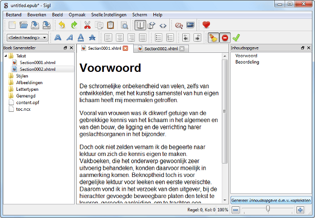 Sigil is een gespecialiseerd programma om e-books op basis van het ePub-formaat te maken.