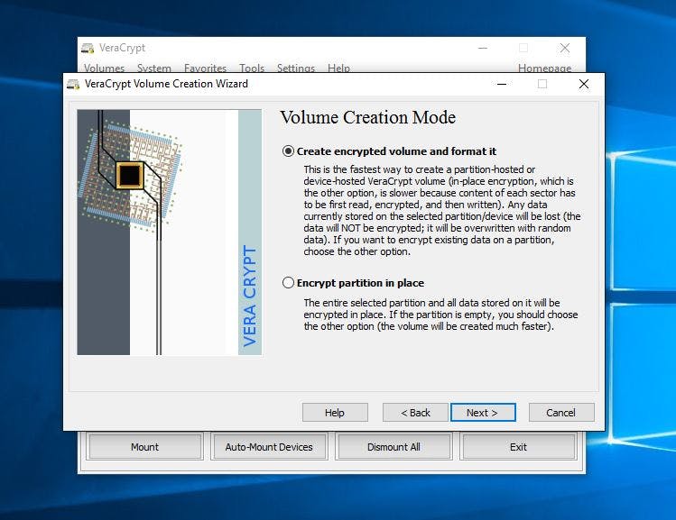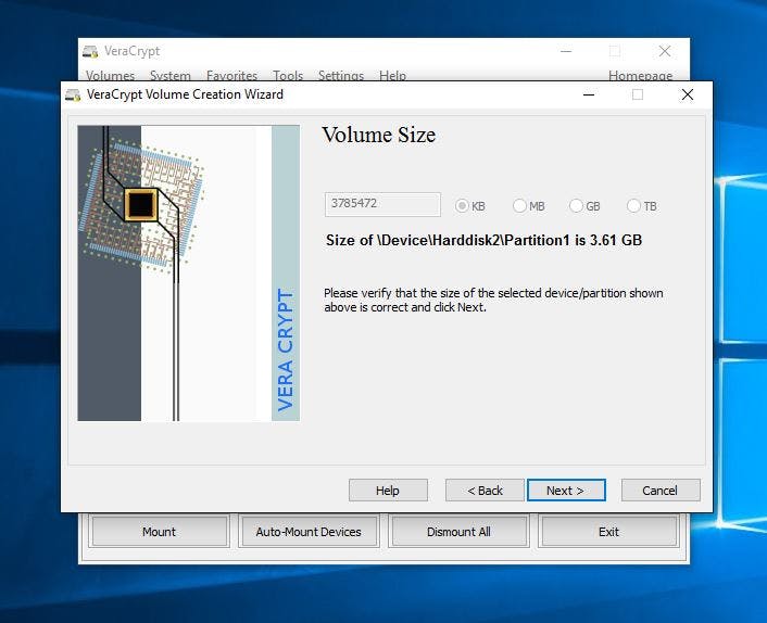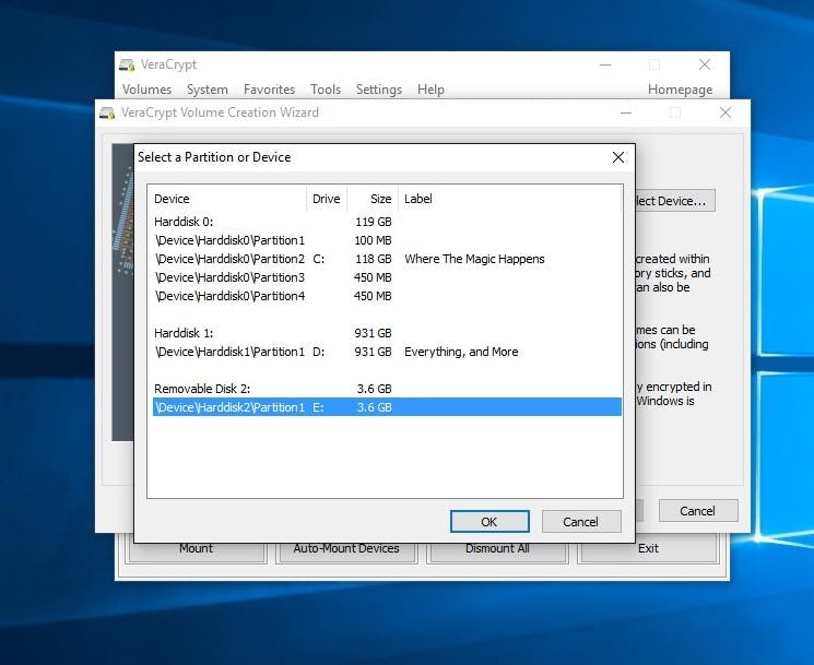 Je hebt ook de keus om een volledige partitie, zoals een usb-stick of sd-kaart, te versleutelen.