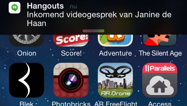 FaceTime is het enige programma wat volledig toegang heeft tot je iPhone. Je hoeft geen aparte app te installeren en de app is compleet geïntegreerd in het adresboek van je iPhone. Wil je met een andere app videobellen, zorg er dan voor dat je in het berichtencentrum meldingen en geluiden voor de app aan hebt staan.